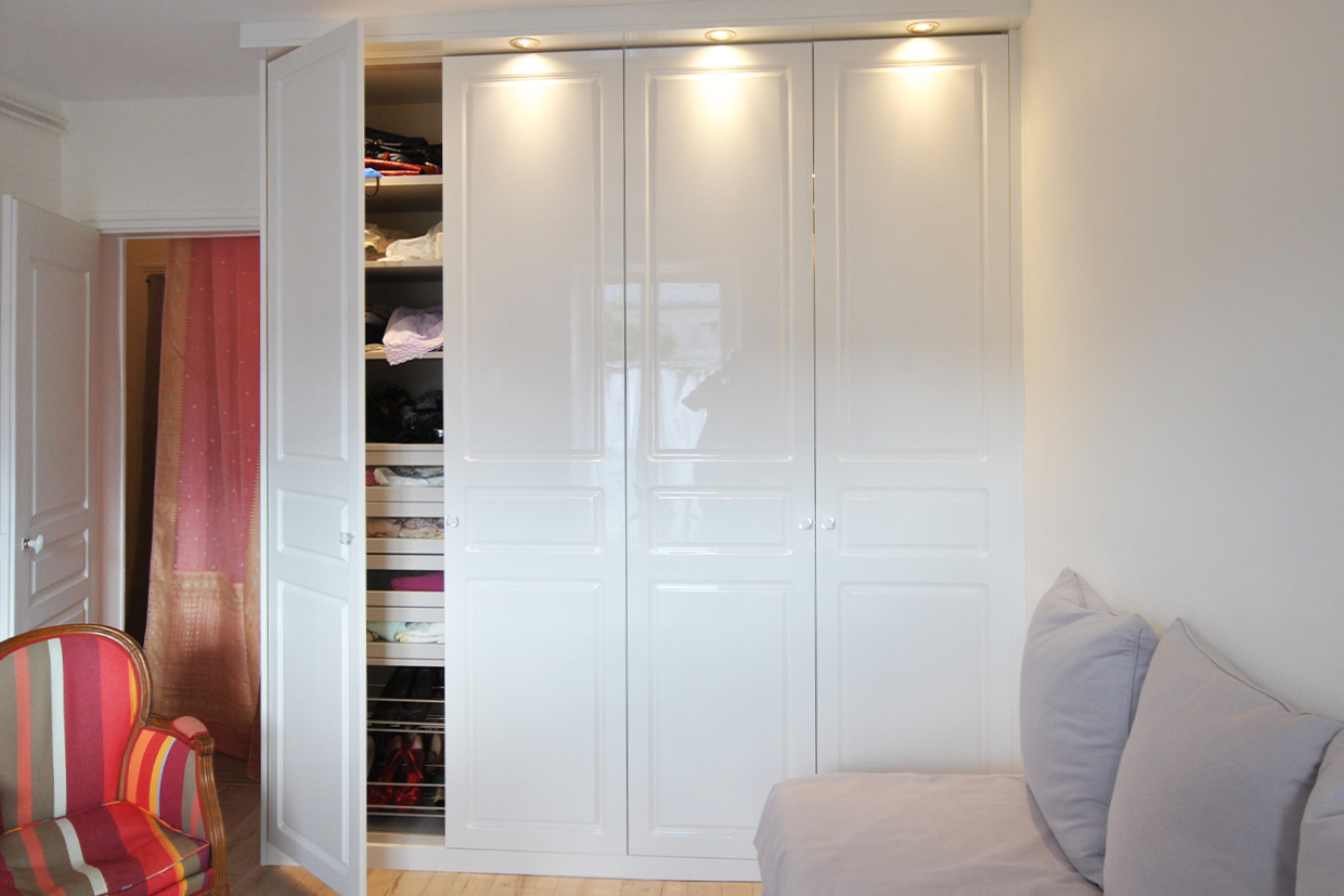 Un dressing entièrement laqué blanc brillant pour une finition lumineuse.